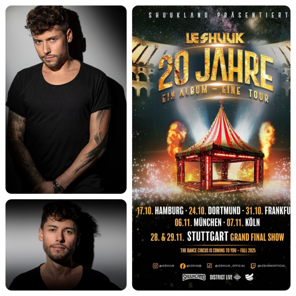 Zur Feier seines 20-jährigen Jubiläums bringt die ,20 JAHRE LE SHUUK TOUR" seine Album-Release-Party im Jahr 2025 in ausgewählte Locations in ganz Deutschland.Es ist erste Konzerttour von Le Shuuk überhaupt. Im Mittelpunkt steht die enge Verbindung zu seinen Fans, die seine mitreißenden Sets jedes Mal eskalieren lassen. Hierfür gibt es auf der Tour eine spezielle Stage mit 360-Grad-Cage, damit die Fans ihn hautnah erleben können.
